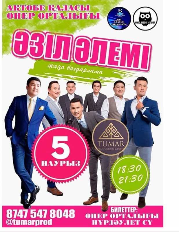 5-наурыз Ақтөбе Өнер орталығында Əзіл-əлемінің жаңа бағдарламасы концертті өтеді