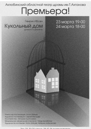 Русская труппа Актюбинского областного театра драмы им.Т.Ахтанова представляет премьеру спектакля по пьесе Генрика Ибсена «Кукольный дом».