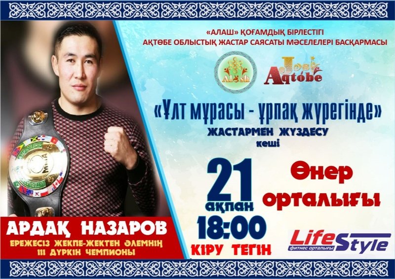 Сіздерді, ережесіз жекпе-жектен әлемнің ІІІ дүркін чемпионы Ардақ Назаровпен жүздесу кешіне шақырамыз!
